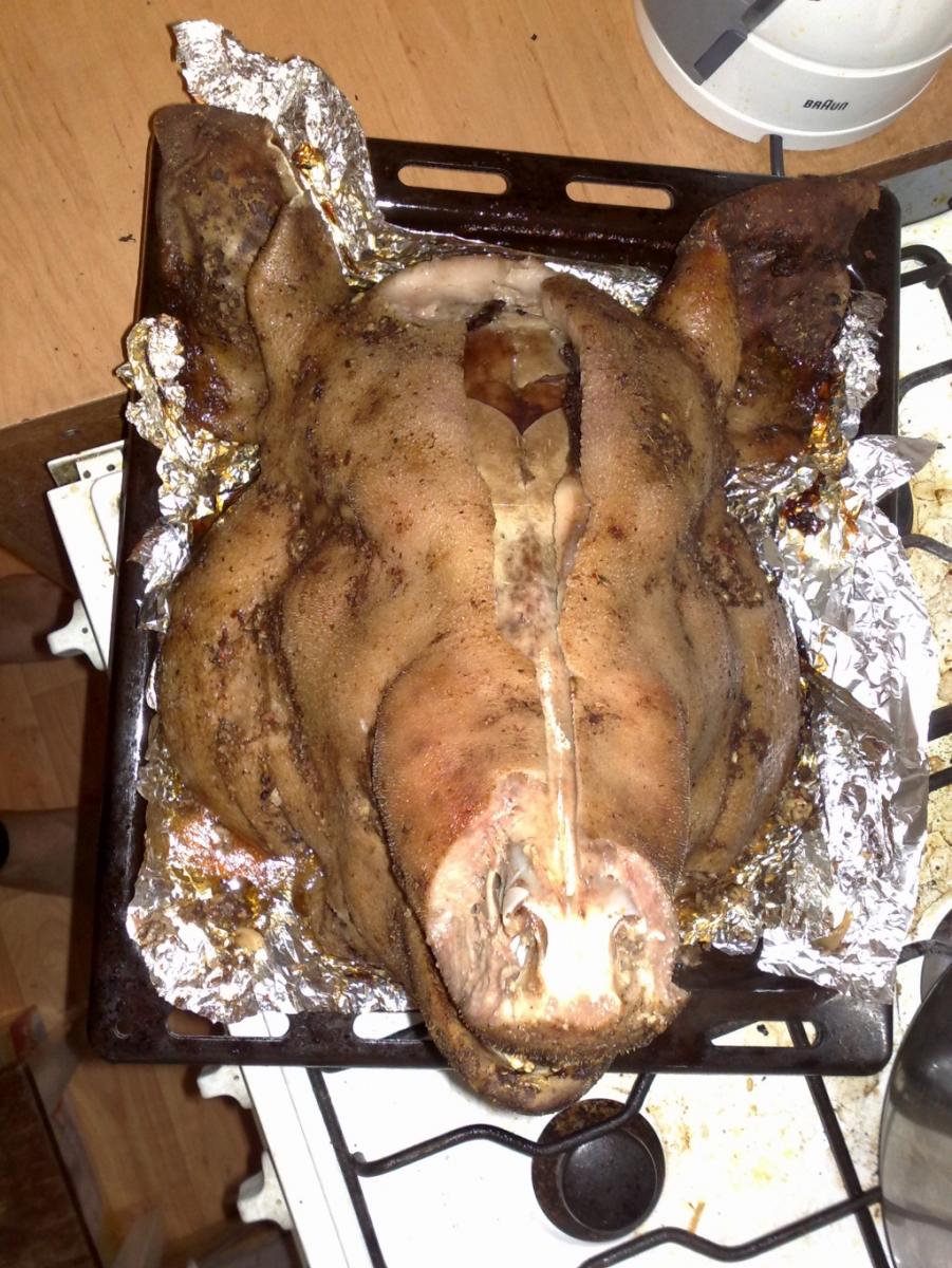 Разогрейте духовку до 230 градусов и выпекайте кабана около 2 часов, затем достаньте его из духовки и накройте фольгой, оставьте еще на 20 минут.